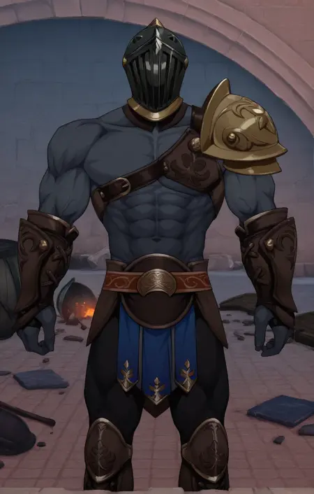 chartonus, char_hsr, 头盔,彩色皮肤,灰色皮肤,肌肉男性,