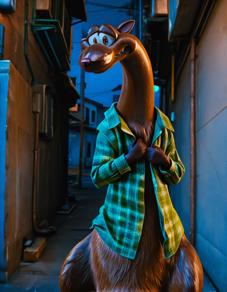 Cheasel, weasel, male, semi-anthro, feral legs, big eyes, long neck, brown fur, bottom-heavy, wide hips