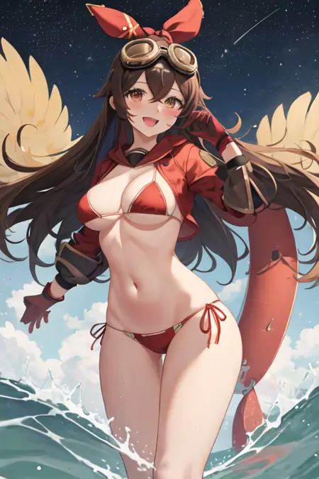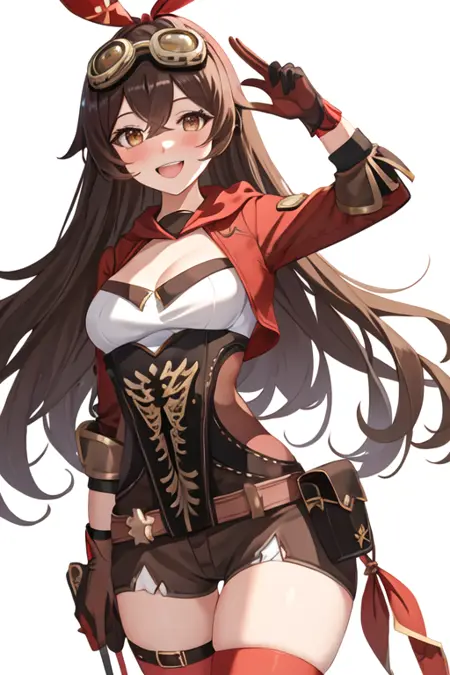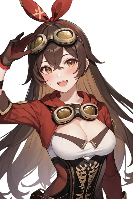 触发词为 amber_genshin,推荐标签为:best quality, masterpiece, highres, solo, {amber_genshin:1.15}, long_hair, brown_hair, bangs, ribbon, hair_ribbon, hair_between_eyes, red_ribbon, breasts, smile, brown_eyes, blush, cleavage, goggles, open_mouth, medium_breasts。