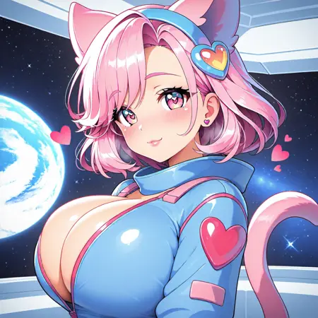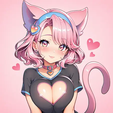 トリガー語は hart catgirl で、これだけで十分に動作します。目が気に入らない場合は、pink eyes とオプションでheart pupilsも推奨します。Illustriousはハート型の瞳を生成するのが得意ですが、下部だけが現れることがあり、これは正常です。
