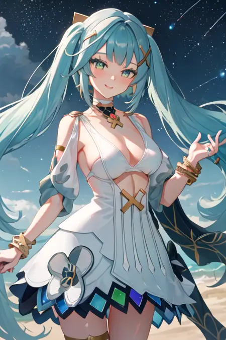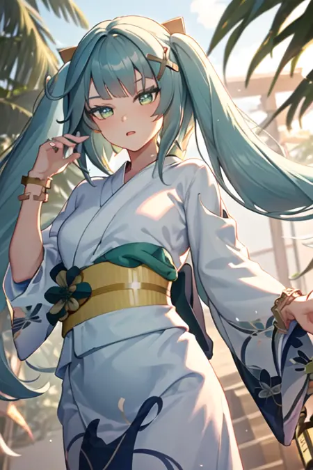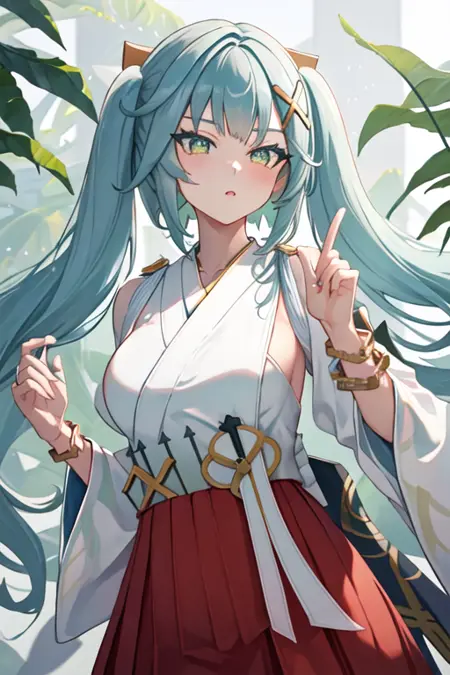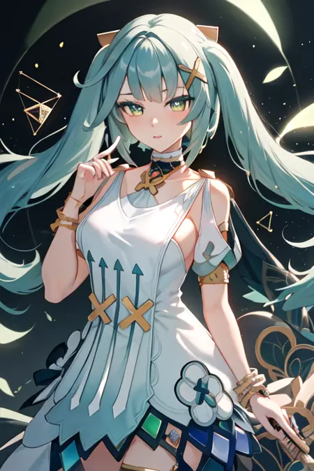 트리거 단어는 faruzan_genshin이며, 권장 태그는 best quality, masterpiece, highres, solo, {faruzan_genshin:1.15}, twintails, bangs, long_hair, hair_ornament, aqua_hair, x_hair_ornament, green_eyes, jewelry, breasts, bracelet, small_breasts, symbol-shaped_pupils, upper_body입니다.