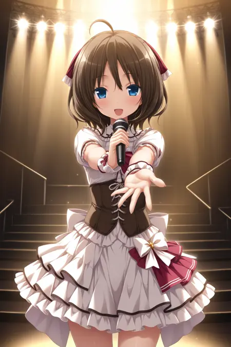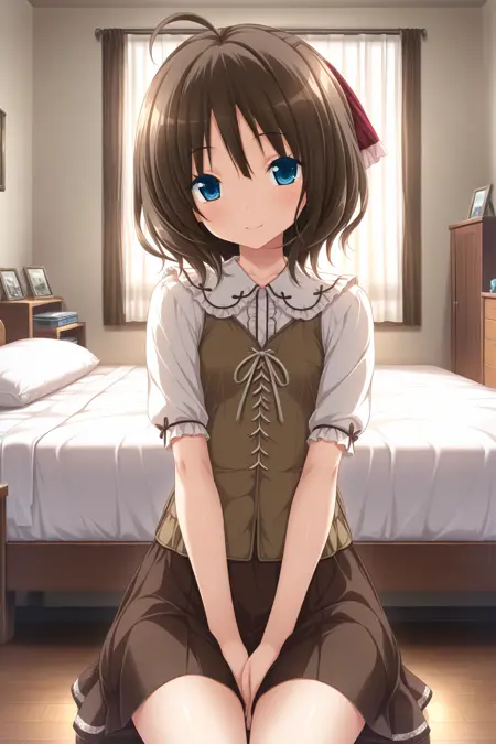 aahotaru, blue eyes, brown hair, ahoge, short hair, hair ribbon, small breasts,