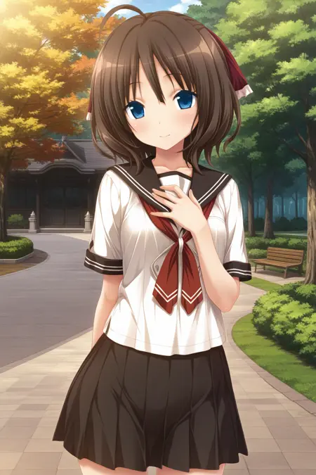 school uniform, white serafuku, red neckerchief, black sailor collar, black skirt