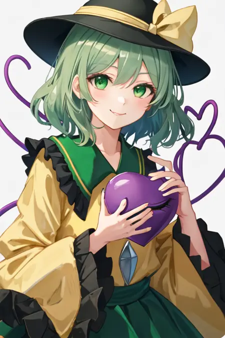 트리거 단어는 komeiji_koishi_touhou이며, 권장 태그는 best quality, masterpiece, highres, solo, {komeiji_koishi_touhou:1.15}, third_eye, hat, green_eyes, black_headwear, short_hair, green_hair, ribbon, smile, bow, upper_body, heart, bangs, hat_ribbon, hat_bow, hair_between_eyes입니다.