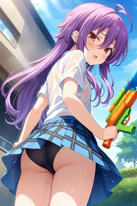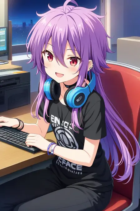 触发词:shinonomerei,紫色头发,天线发,眉间发,凌乱头发,长发,红眼睛,耳洞
