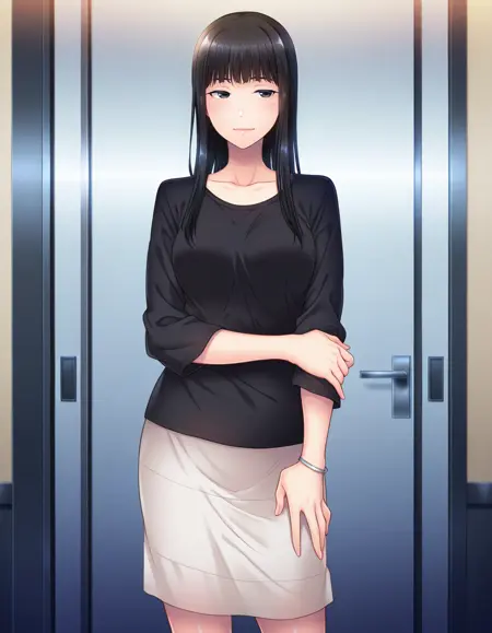 saki_relaxation_yuka, 黑发, 黑眼, 长发, 刘海, 嘴唇, 纤细,