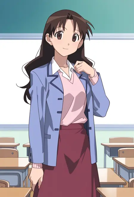 触发词:youkariss,长发,棕色头发女性,长袖,夹克,裙子