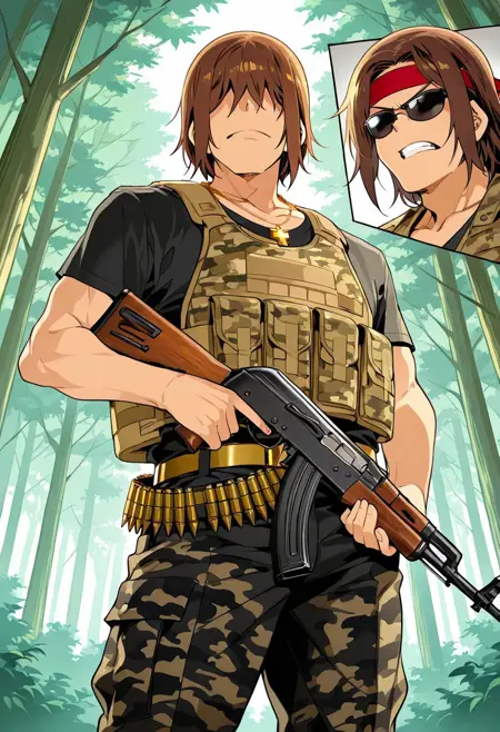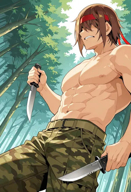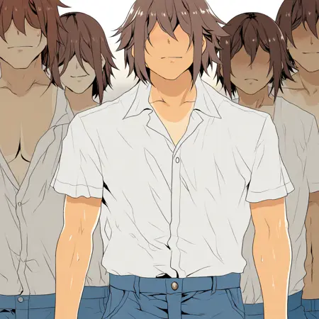 (( lora:hentai\_mc:1 , hentai_mc, faceless, shaded face, toned body, manly, strong male, alfa male, short brown hair, hair over eyes, charismatic male, ))