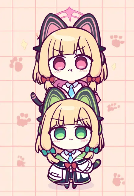 chibi, chibi only, super deformed, miniature, tiny, small breasts, big head, short limbs, cute, big eyes, small mouth, round face, short stature, tiny hands, tiny feet, cute outfit, oversized head, sparkles, blush stickers, simple shading, pastel colors,結果に影響する可能性のあるタグ:ちび画像を生成する際は追加しないことを推奨します(さらに更新予定):リンク