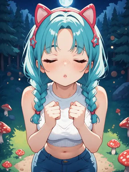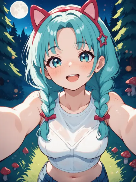 aqua hair, parted bangs, long hair | over shoulder | twin braids,