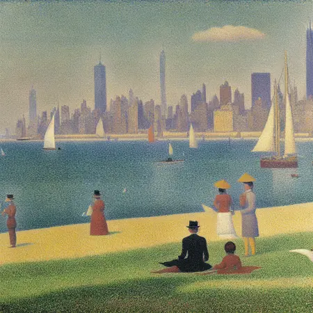 Georges Seurat was a French post-impressionist artist who was famous for pioneering the distinctive painting technique known as pointillism. His most famous work, A Sunday Afternoon on the Island of La Grande Jatte, featuring many people sitting and enjoying a day at the park, is found at the Art Institute of Chicago.