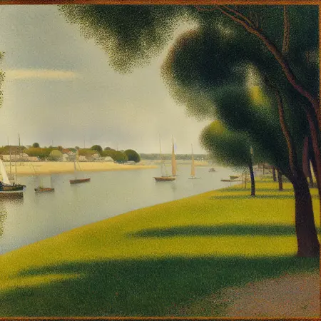 This model is particularly well-suited for Seurat's favorite subjects of boats, beaches, seasides, sailing, and so on, and it handles people pretty well too.