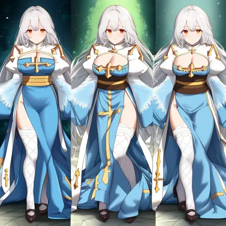 RObishop, 흰색 허벅지 길이 양말, 긴 소매, 긴 드레스, 푸른 드레스, 소매, 가슴 부분, 옆 슬릿, 띠, 하이힐,