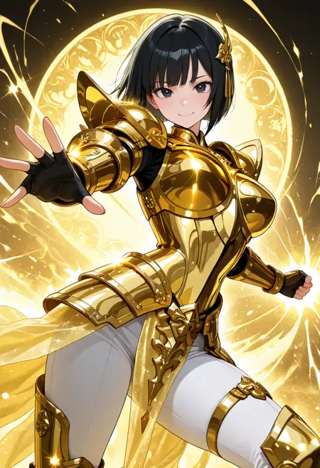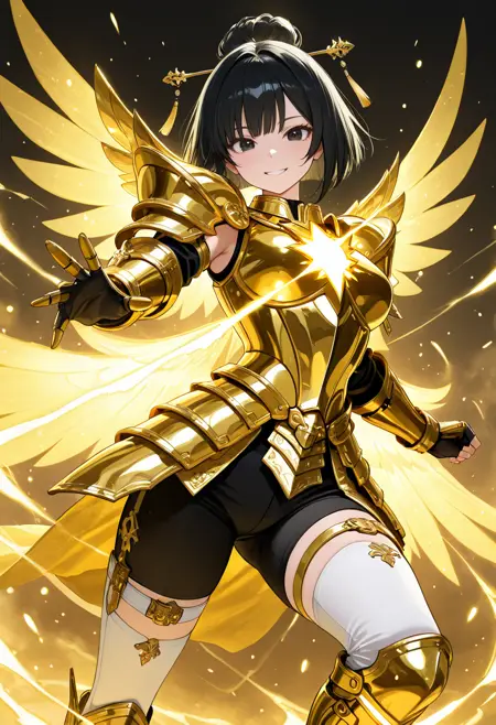 金色 등에 빛나는 마이트릴 갑옷을 생성할 수 있는 LoRA입니다.