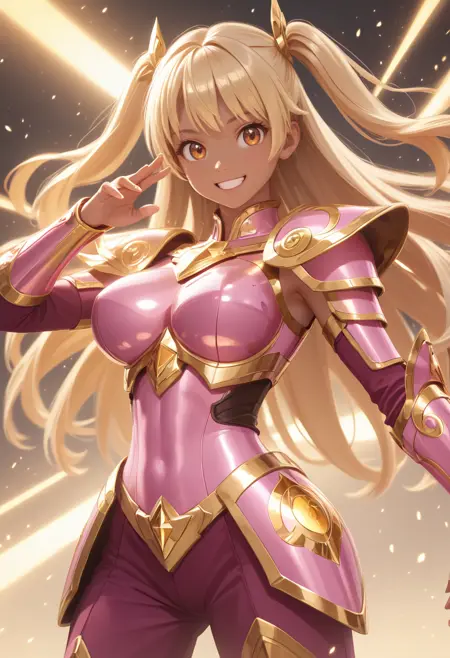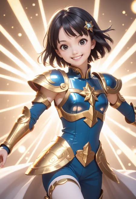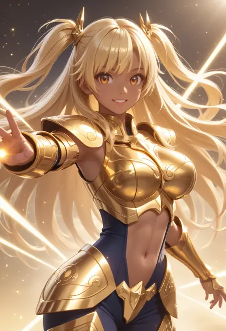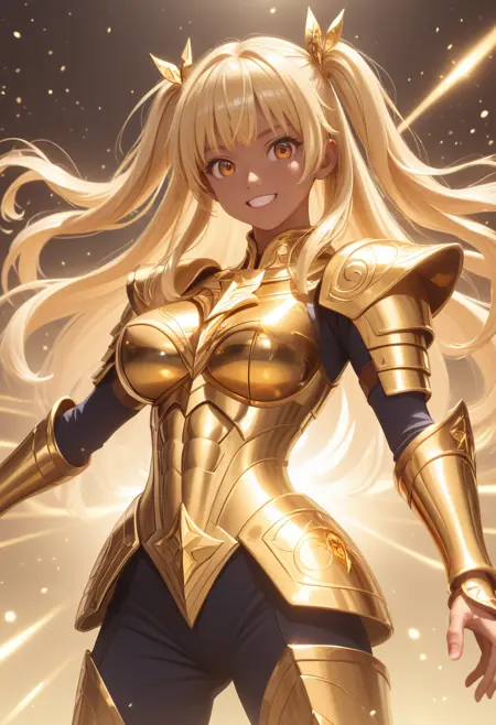 此LoRA可能生成金色或其他金属色光泽的秘银铠甲。