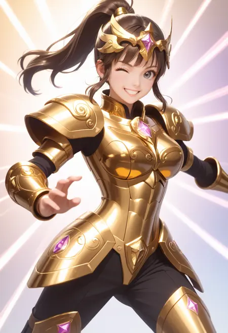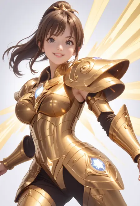 金色 등에 빛나는 마이트릴 갑옷을 생성할 수 있는 LoRA입니다.
