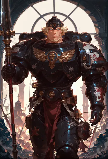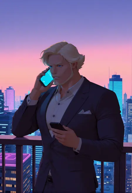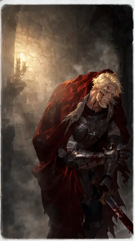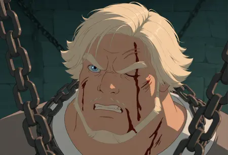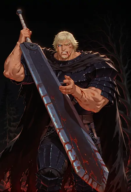 Other tags - dobriba, 1boy, blue eyes, male focus, facial hair, looking at viewer,, beard, thick eyebrows, mustache, white hair ( or blonde hair)