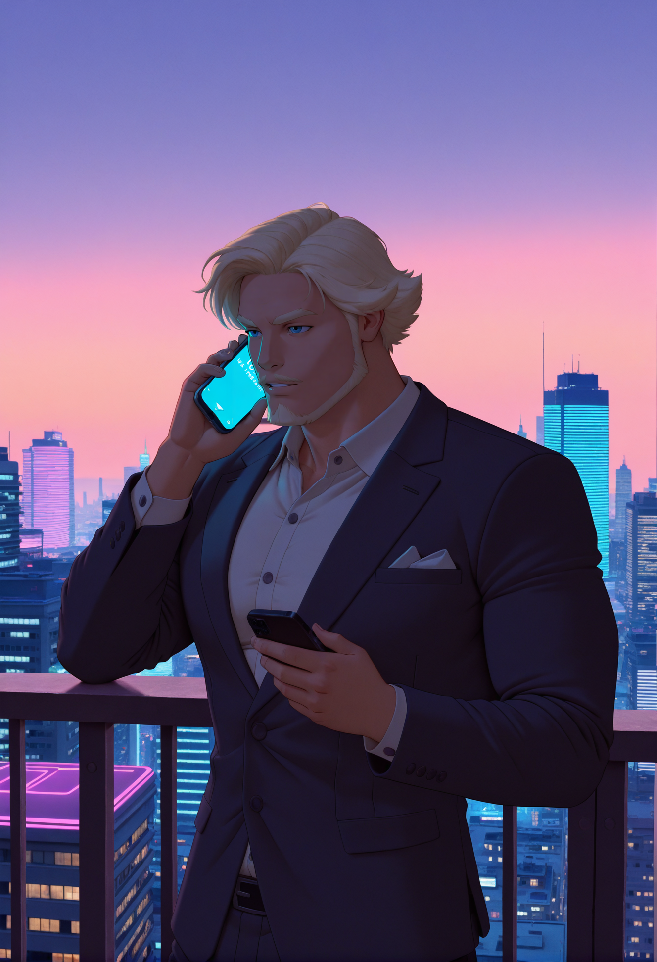 기타 태그 - dobriba, 1boy, 파란 눈, 남성 초점, 안면 털, 시선을 향함, 수염, 두꺼운 눈썹, 콧수염, 흰색 머리(또는 금발 머리)