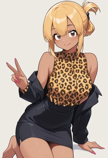 Leopard Outfit : leopard print shirt, sleeveless shirt, shirt tucked in, bare shoulders, high-waist skirt, black pencil skirt || jacket, off shoulder,