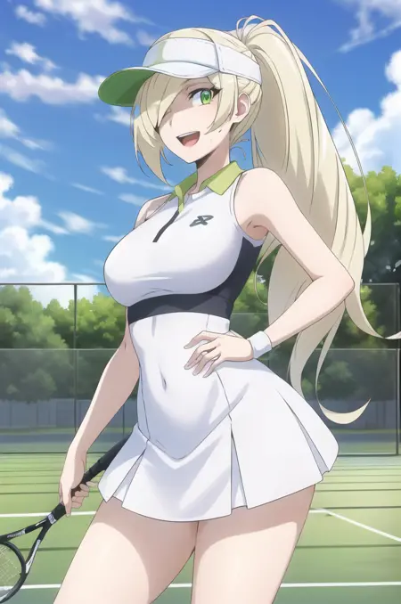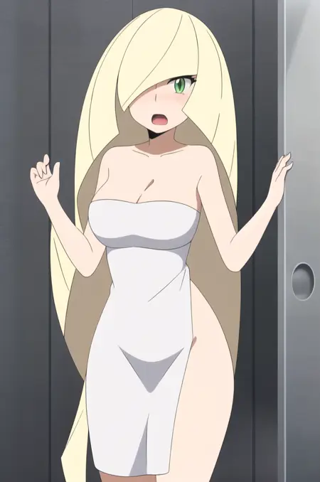 <lora:Lusamine-IL-08:0.8>, ChopioLus4mine, 金色头发, 极长发, 头发遮住一只眼睛, 绿色眼睛, 睫毛, 注视观众,