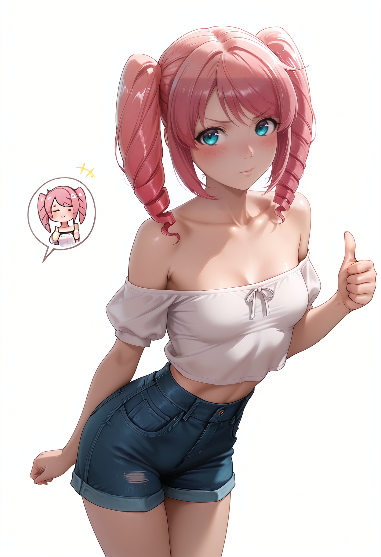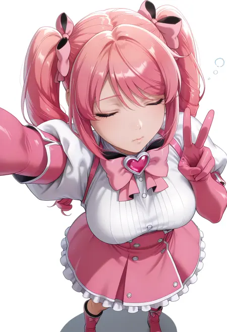 [c]hanabishi_haruka, 분홍 머리, 트윈테일 + 분홍 리본, 드릴 머리, 마름olle, 작은 가슴,