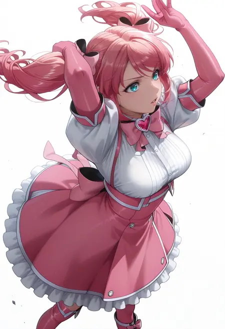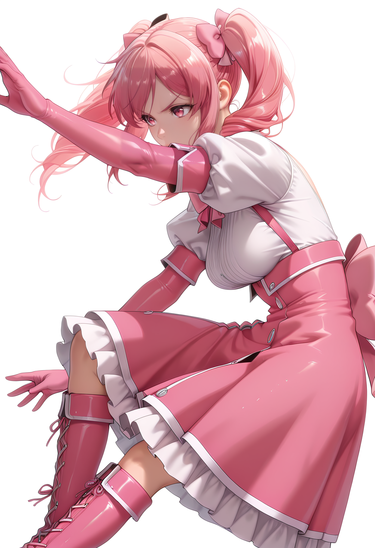 [m]agia_magenta, 분홍 장갑, 팔꿈치 장갑, 분홍 드레스, 짧은 소매, 퍼프 소매, 분홍 리본, 분홍 부츠,