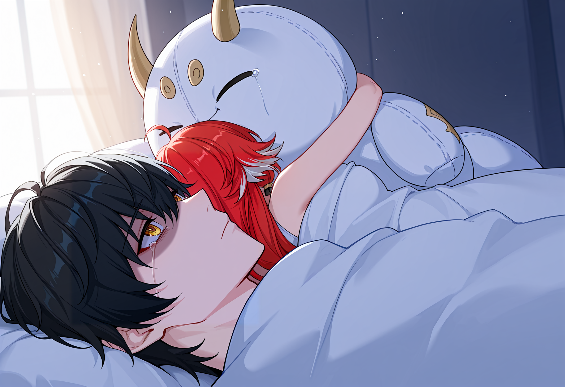 推奨タグのいずれかを含めてください: 睡眠中、ぬいぐるみ、ぬいぐるみ動物、見上げる、