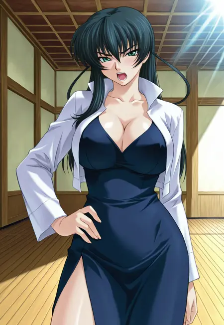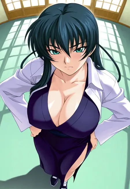 태그: 타이마닌(시리즈), 타이마닌 아사기, 이가와 아사기, 긴 머리, 진한 파란 머리, 눈 사이의 머리카락, 청록색 눈, 끝이 올라간 눈, 입술, 메이크업, 큰 가슴, 곡선형 몸매,