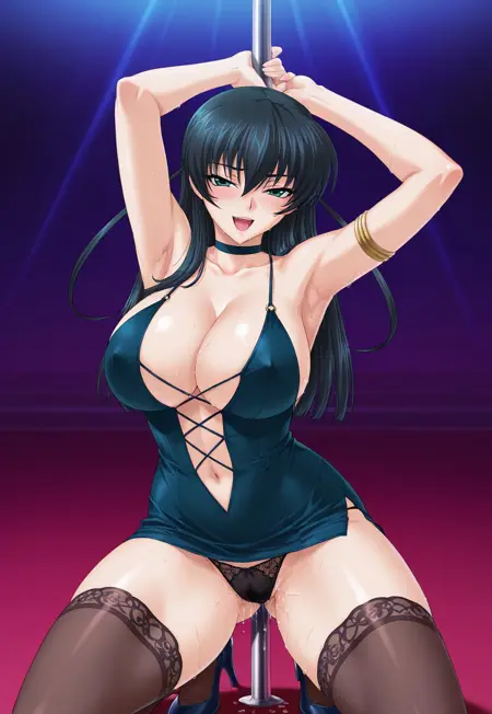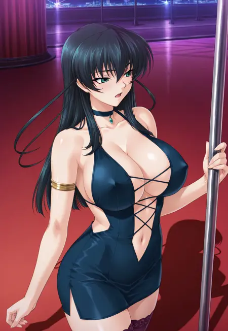 Tags: taimanin (series), taimanin asagi, igawa asagi, long hair, dark blue hair, hair between eyes, teal eyes, tsurime eyes, lips, makeup, large breasts, curvy,