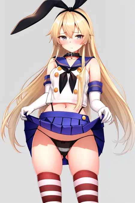 The trigger word is shimakaze_kantaicollection, and the pruned tags are blonde_hair, long_hair, hairband, hair_ornament. When some features (e.g. hair color) are not so stable at some times, you can add these them into your prompt.