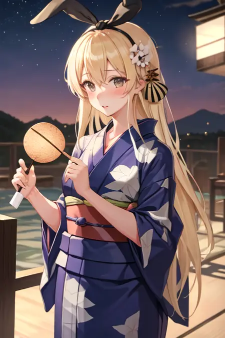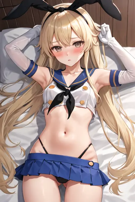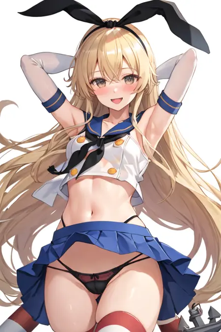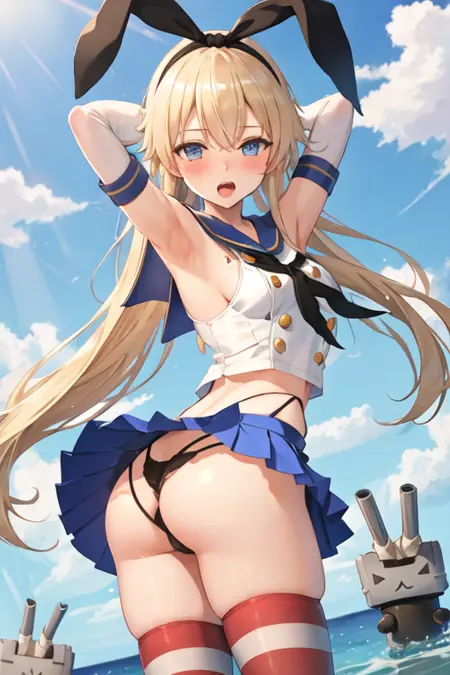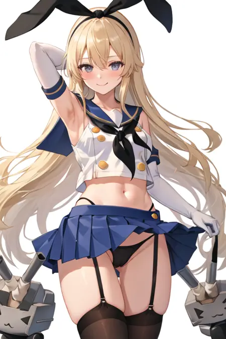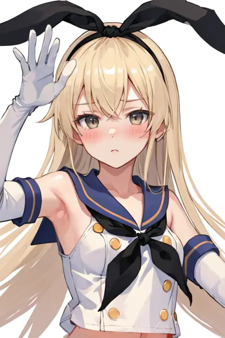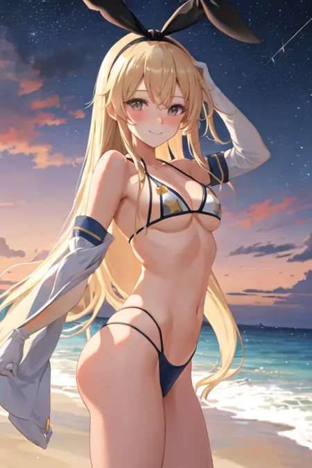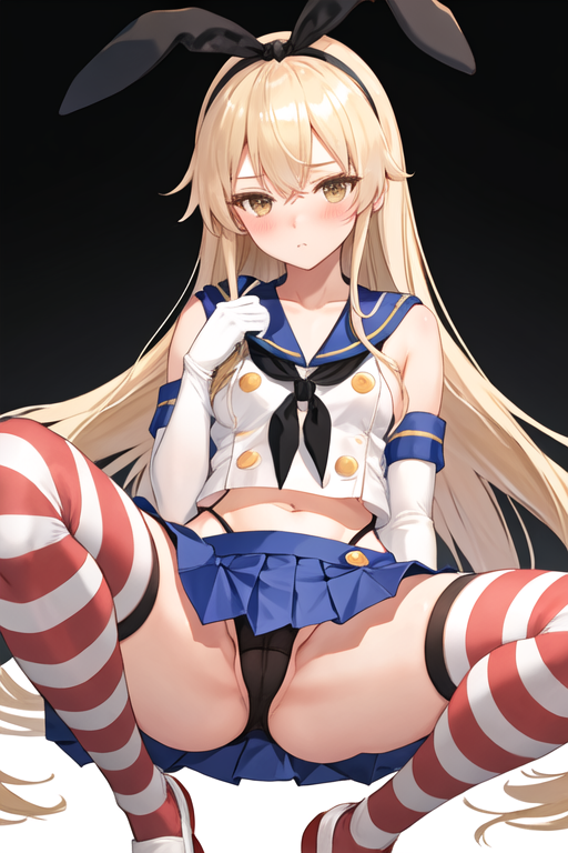 The trigger word is shimakaze_kantaicollection, and the pruned tags are blonde_hair, long_hair, hairband, hair_ornament. When some features (e.g. hair color) are not so stable at some times, you can add these them into your prompt.