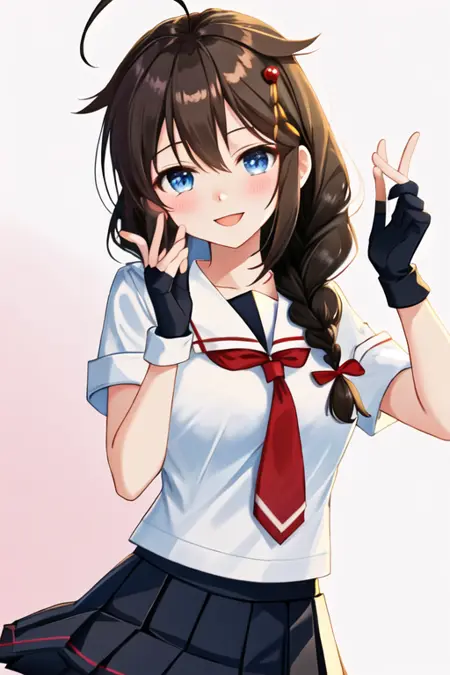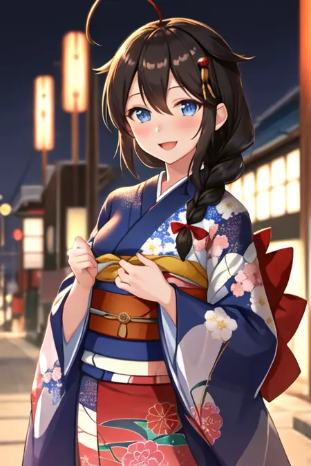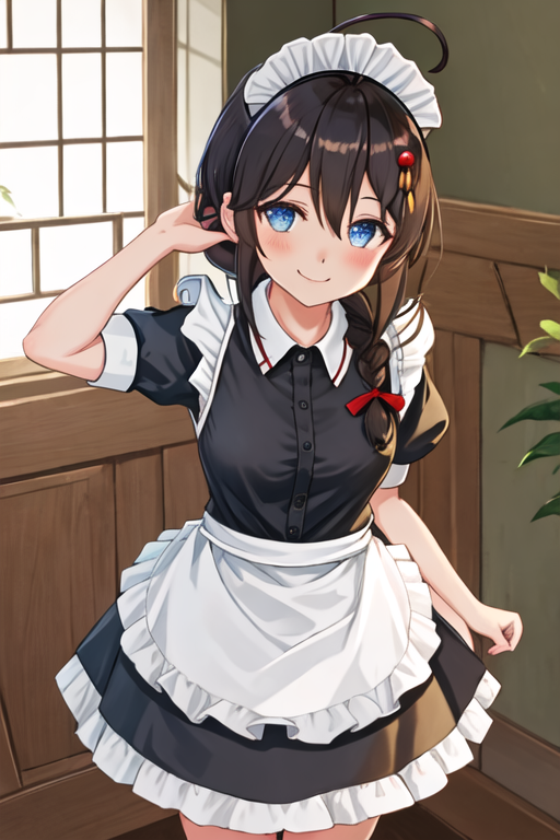 The trigger word is shigure_kantaicollection, and the recommended tags are best quality, masterpiece, highres, solo, {shigure_kantaicollection:1.15}, long_hair, blue_eyes, ahoge, hair_flaps, braid, single_braid, hair_ornament, brown_hair, blush, black_hair, smile, hair_between_eyes, breasts.