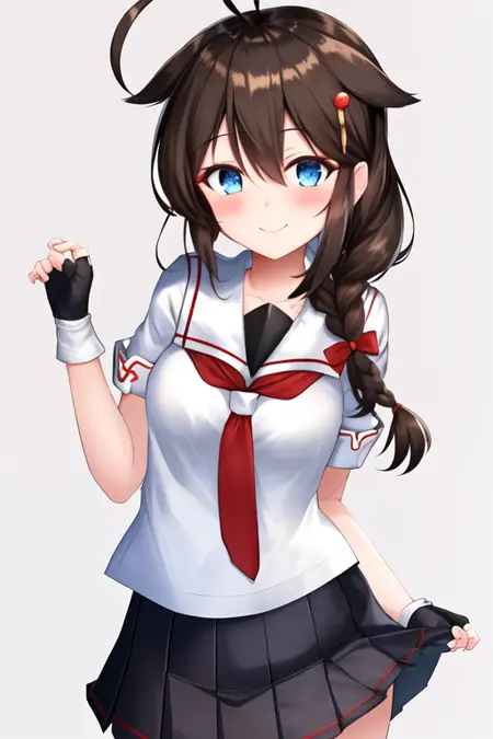 The trigger word is shigure_kantaicollection, and the recommended tags are best quality, masterpiece, highres, solo, {shigure_kantaicollection:1.15}, long_hair, blue_eyes, ahoge, hair_flaps, braid, single_braid, hair_ornament, brown_hair, blush, black_hair, smile, hair_between_eyes, breasts.
