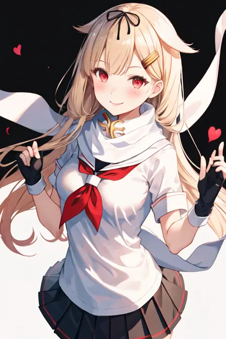 트리거 단어는 yuudachi_kantaicollection이며, 권장 태그는 best quality, masterpiece, highres, solo, {yuudachi_kantaicollection:1.15}, long_hair, blonde_hair, ribbon, hair_ribbon, hair_flaps, hair_ornament, red_eyes, hairclip, black_ribbon, smile, blush, serafuku, breasts입니다.