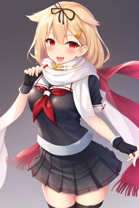 The trigger word is yuudachi_kantaicollection, and the recommended tags are best quality, masterpiece, highres, solo, {yuudachi_kantaicollection:1.15}, long_hair, blonde_hair, ribbon, hair_ribbon, hair_flaps, hair_ornament, red_eyes, hairclip, black_ribbon, smile, blush, serafuku, breasts.