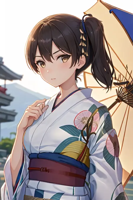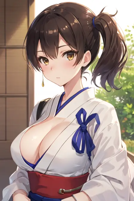 트리거 단어는 kaga_kantaicollection이며, 권장 태그는 best quality, masterpiece, highres, solo, {kaga_kantaicollection:1.15}, brown_hair, side_ponytail, brown_eyes, short_hair, breasts, long_hair입니다.