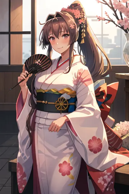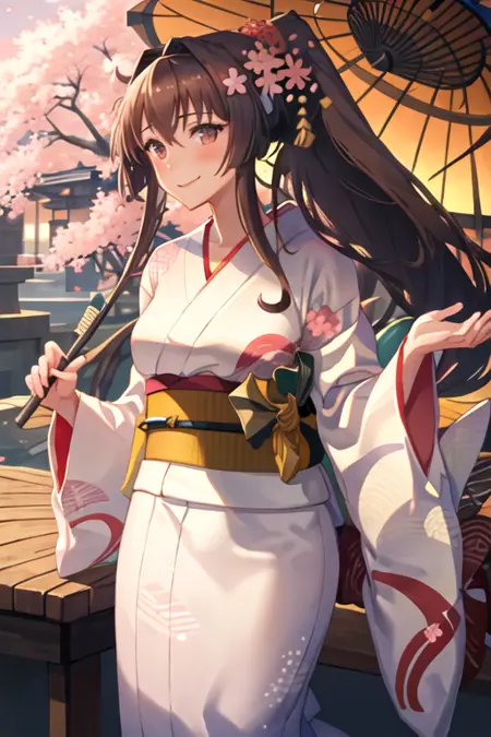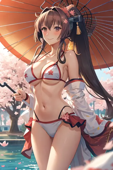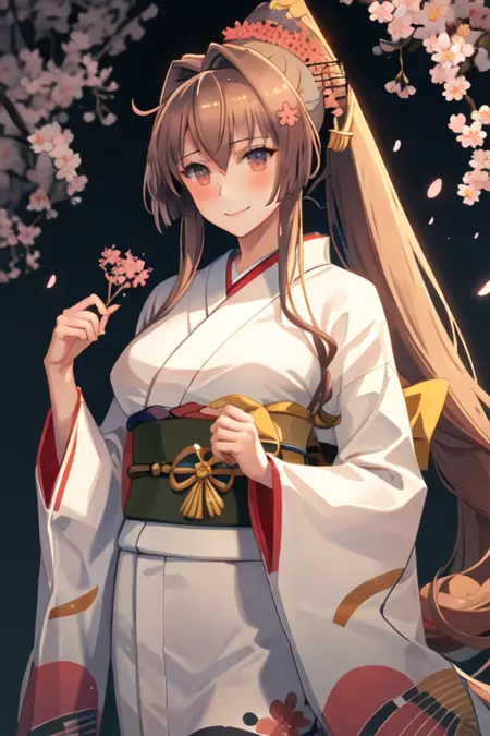 トリガー単語はyamato_kantaicollectionで、推奨タグはbest quality, masterpiece, highres, solo, {yamato_kantaicollection:1.15}, long_hair, brown_hair, ponytail, hair_ornament, flower, hair_flower, brown_eyes, smile, breasts, cherry_blossoms, large_breasts, very_long_hair, blush, hair_between_eyesです。