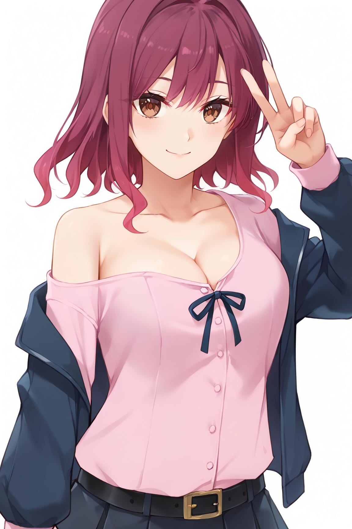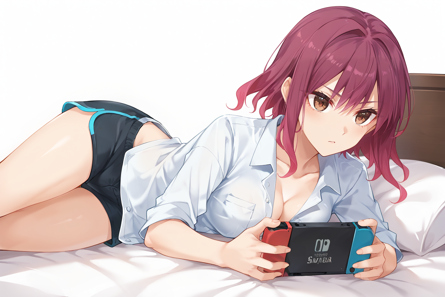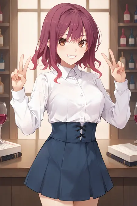 AmouHibiki、ワイン色の髪、ミディアムヘア、前髪、茶色い目、サイドロップ