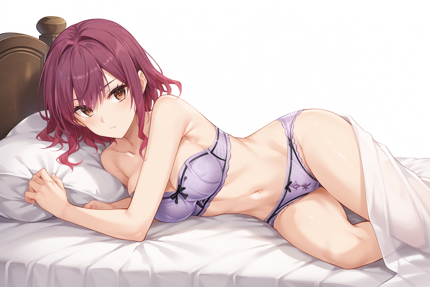 SpecialLingerie、薄紫色のブラ、ストラップレス、薄紫色のパンツ、