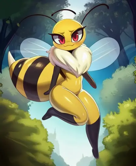 主要触发词是“bee”,但我也会同时使用“黑色斑纹”、“黄色身体”和“触角”!