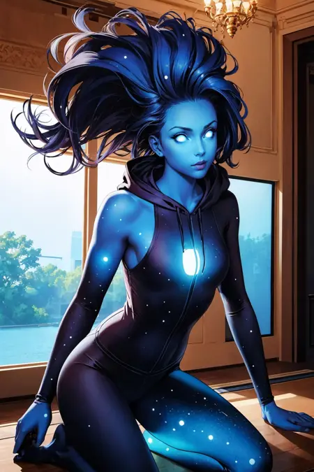 • 有用标签:蓝色皮肤,发光,发光的眼睛,裸体,裸露肩膀,长发,怪物女孩