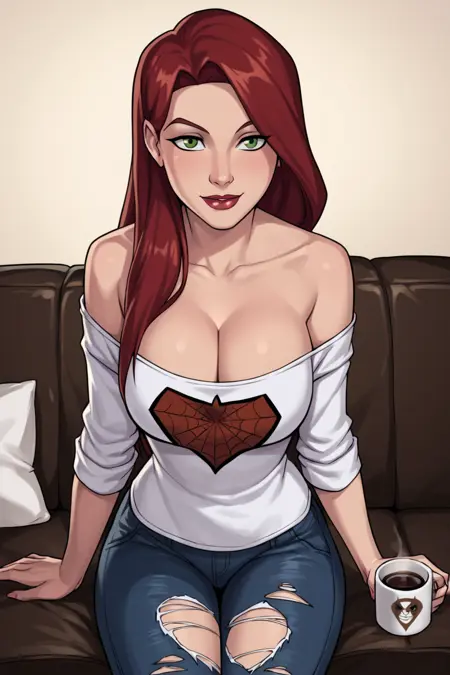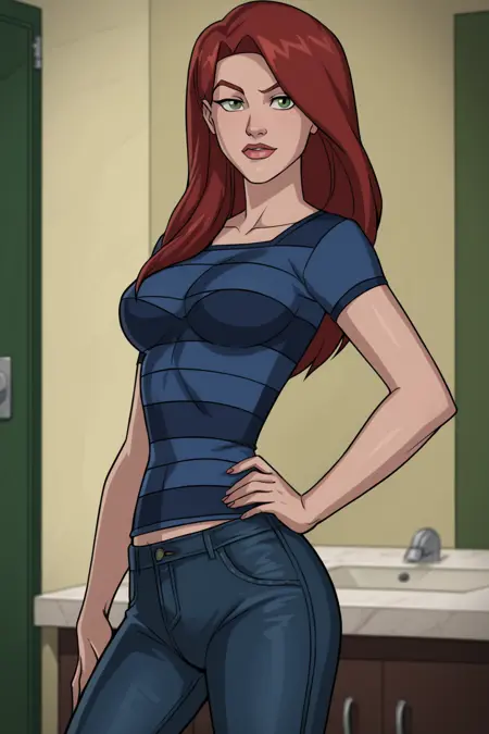 기본 프롬프트: mary jane watson, 긴 머리, 빨간 머리, 녹색 눈, 립스틱
