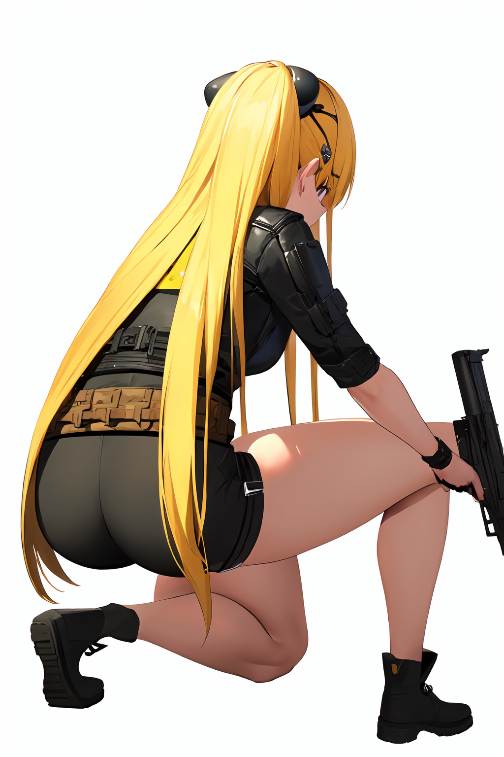 Type2: nikke_type2, しゃがみ姿, 太もも, 背を向けて, 後方から