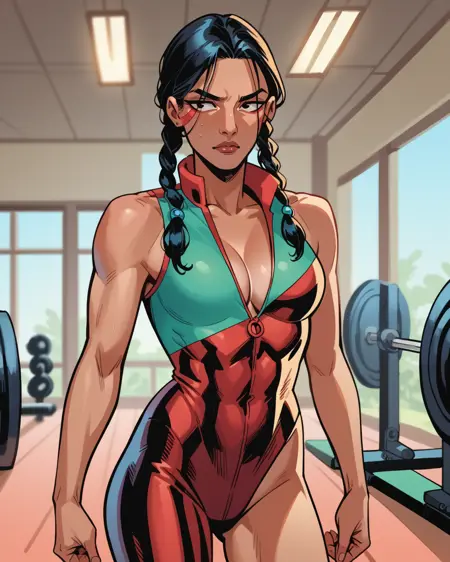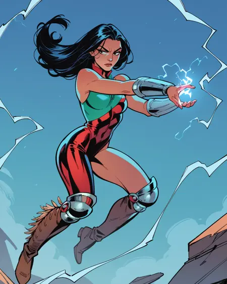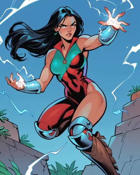 触发词:rainmaker, native american, long hair, black hair, bodysuit, asymmetrical clothes, gauntlets, knee boots,