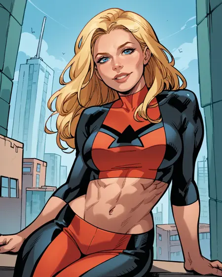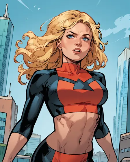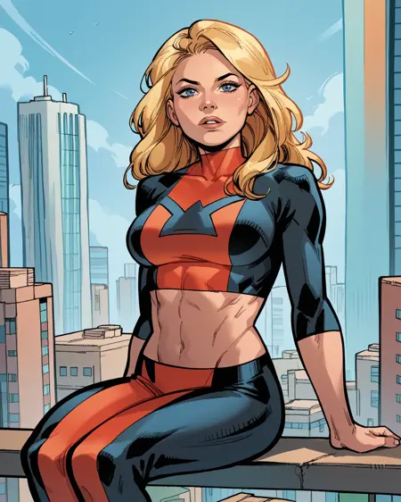 触发词:lightspeedmarvel, 金发, 蓝眼, 露脐上衣, 露腹, 健美, 裤子, 靴子