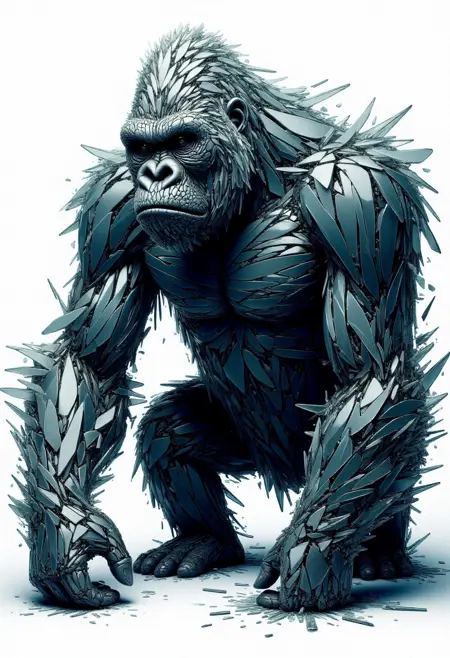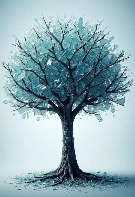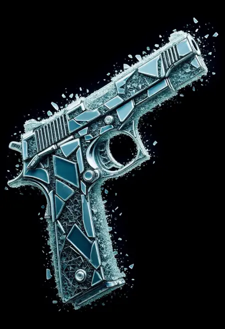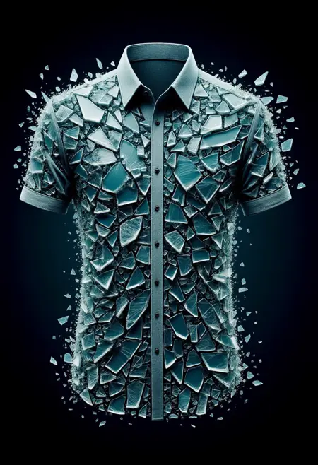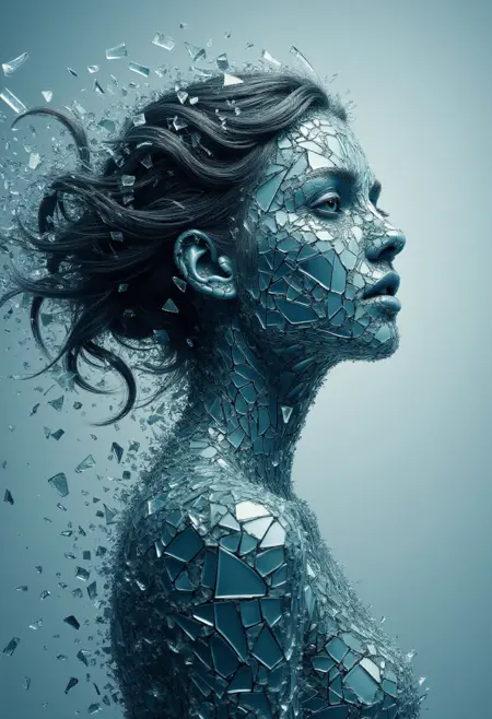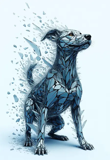 提示:数字艺术作品,以风格化、超现实的图像呈现 (主体),完全由破碎的玻璃构成。
