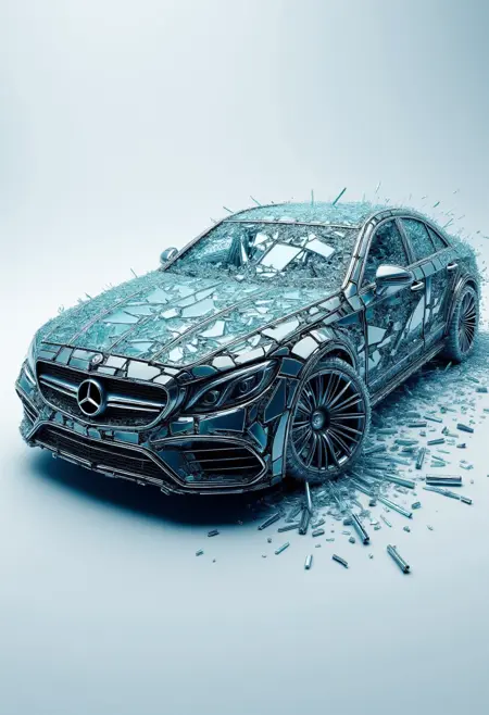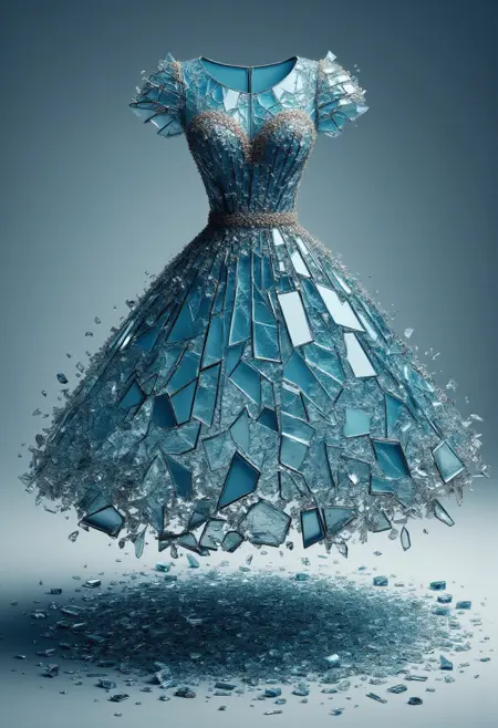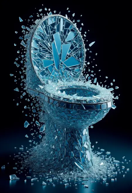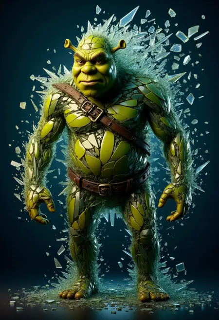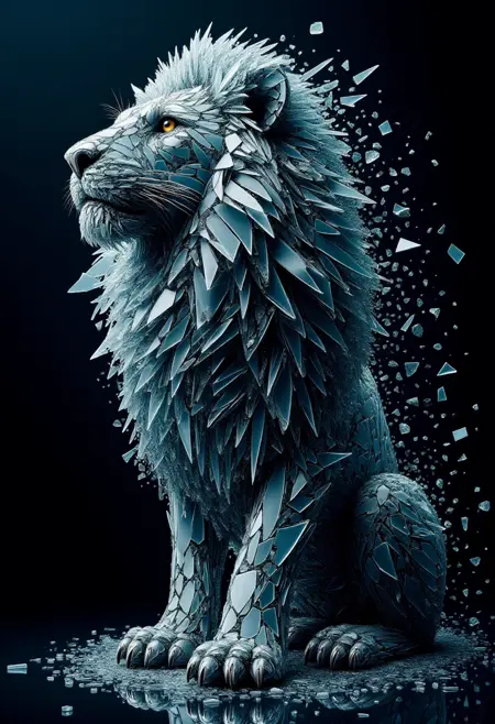 프롬프트: **(주제)**를 완전히 부서진 유리로 구성된 스타일리시하고 초현실적인 디지털 아트 작품.