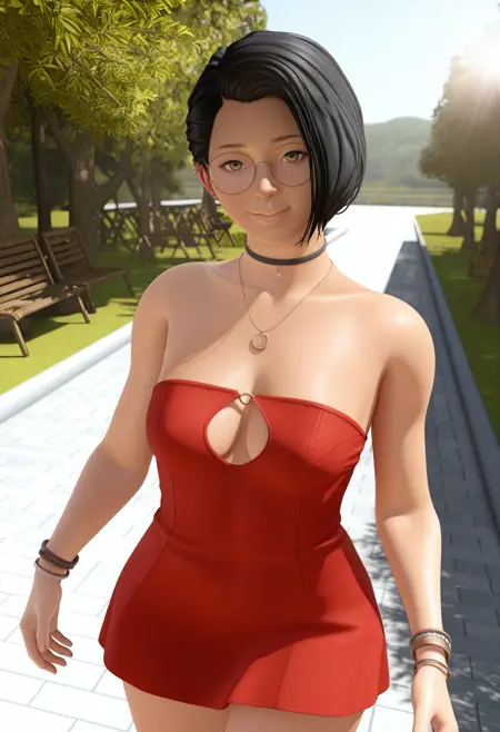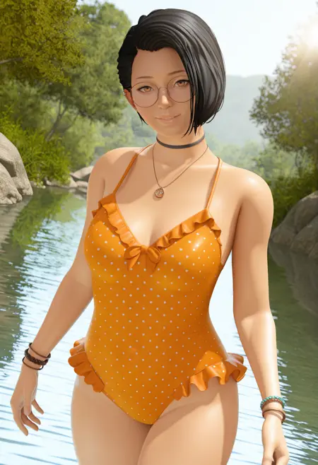 그녀는 속옷 외에는 특별히 트레이닝된 옷이 없으므로 아무거나 프롬프트해도 됩니다. 여러 액세서리를 가지고 있습니다.