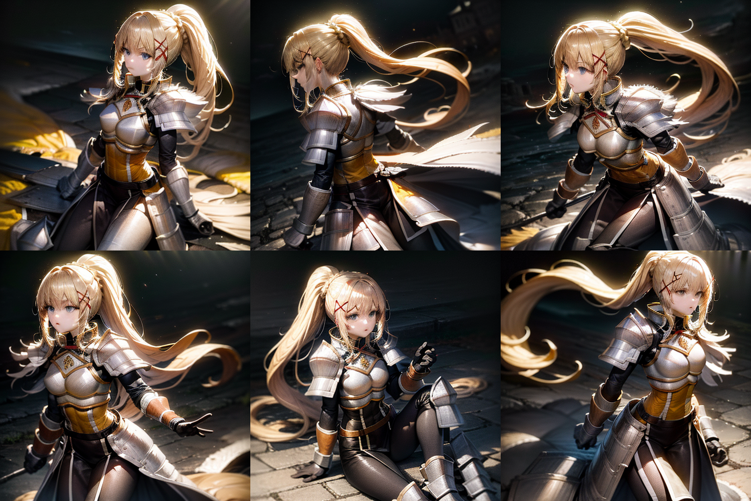 권장 설정:DPM++ 2M KARRASCLIP: 2CFG: 7STEP: 30추가 프롬프트: 갑옷 부츠, 바디수트, 가슴갑옷, 어깨갑옷, 단발머리, 금발, x 헤어 장신구, 갑옷