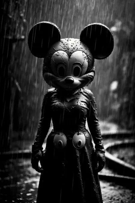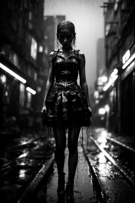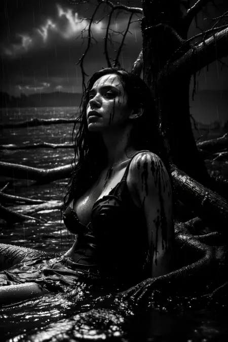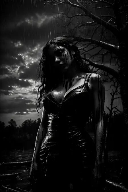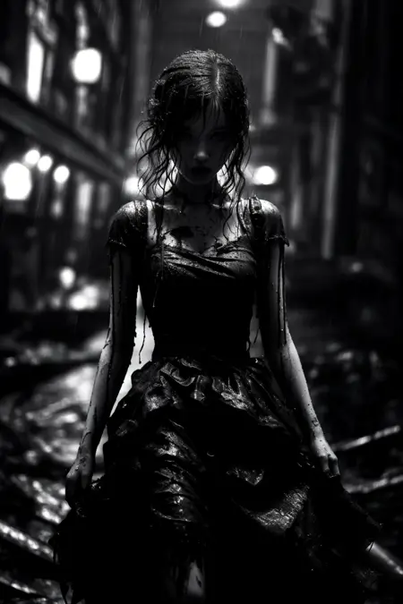 画像にこのような陰鬱な効果を望まない場合でも、モノクロスタイルを試したい場合は、私のモデルを使ってみてください。これは光と影の驚異的なコントラストを提供します。使用する際、重みを減らすことで、単にトリガー語を入力するよりもはるかに優れたモノクロ結果を得られます。